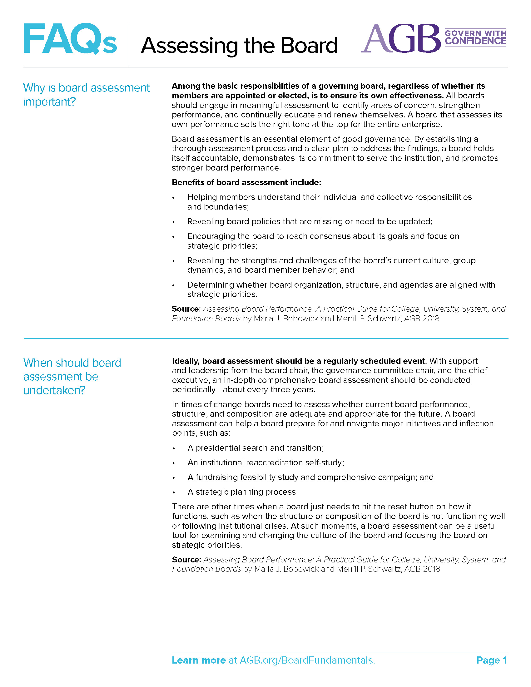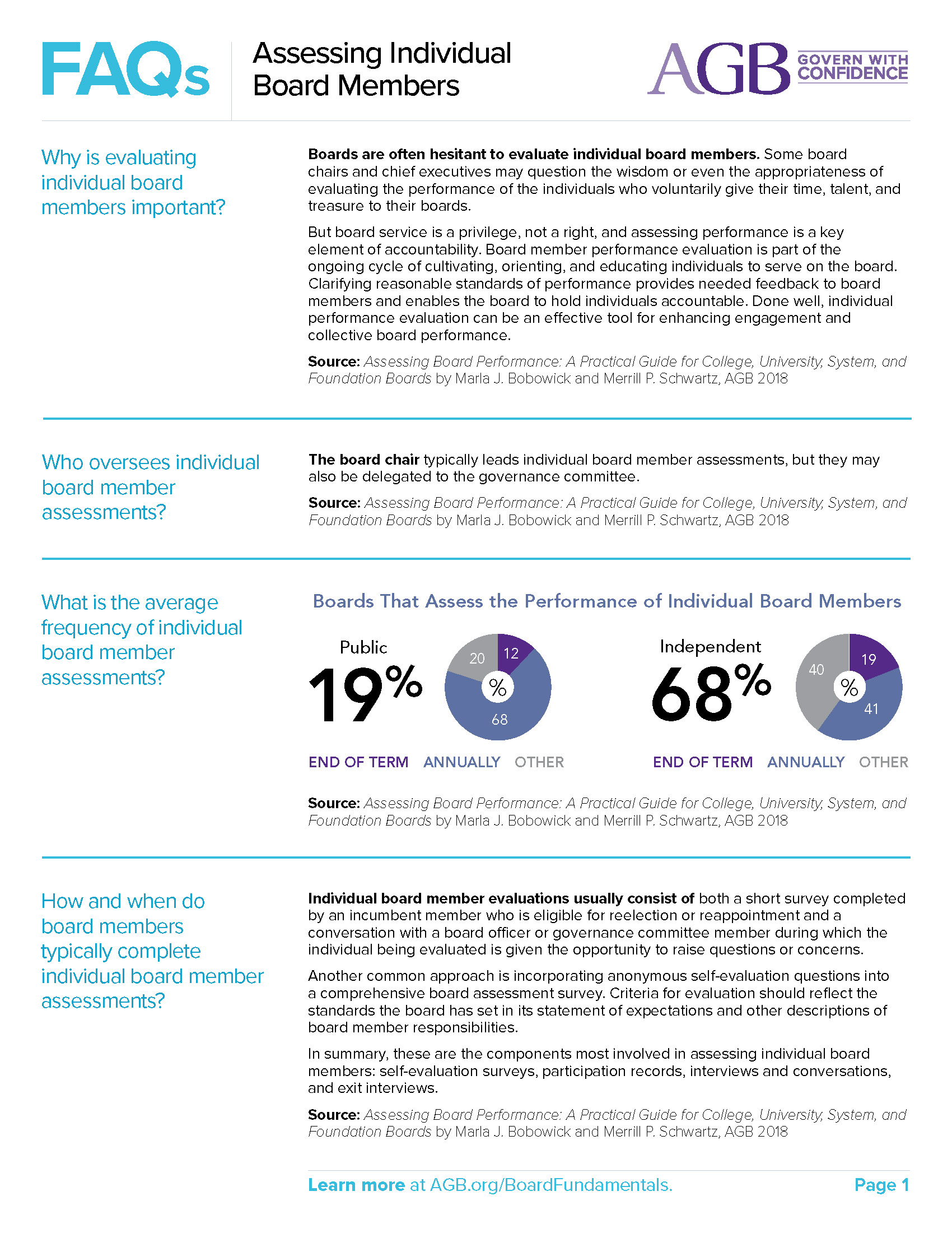 This guide helps boards and leaders understand the basics of board assessment and outlines recommendations based on AGB's experience.