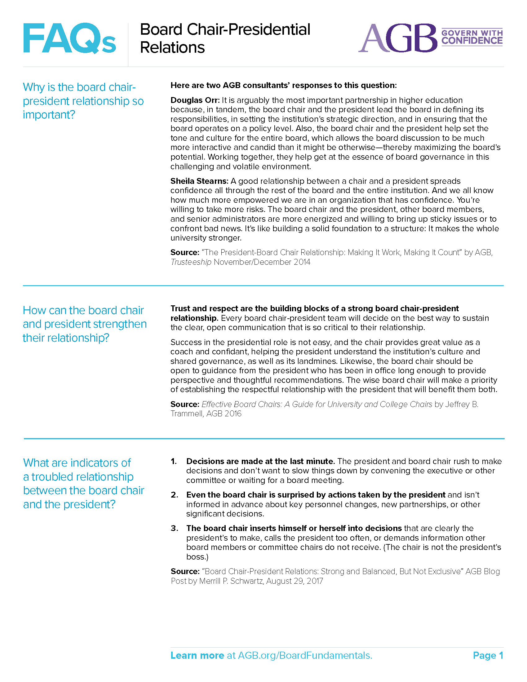 Board Chair-Presidential Relations