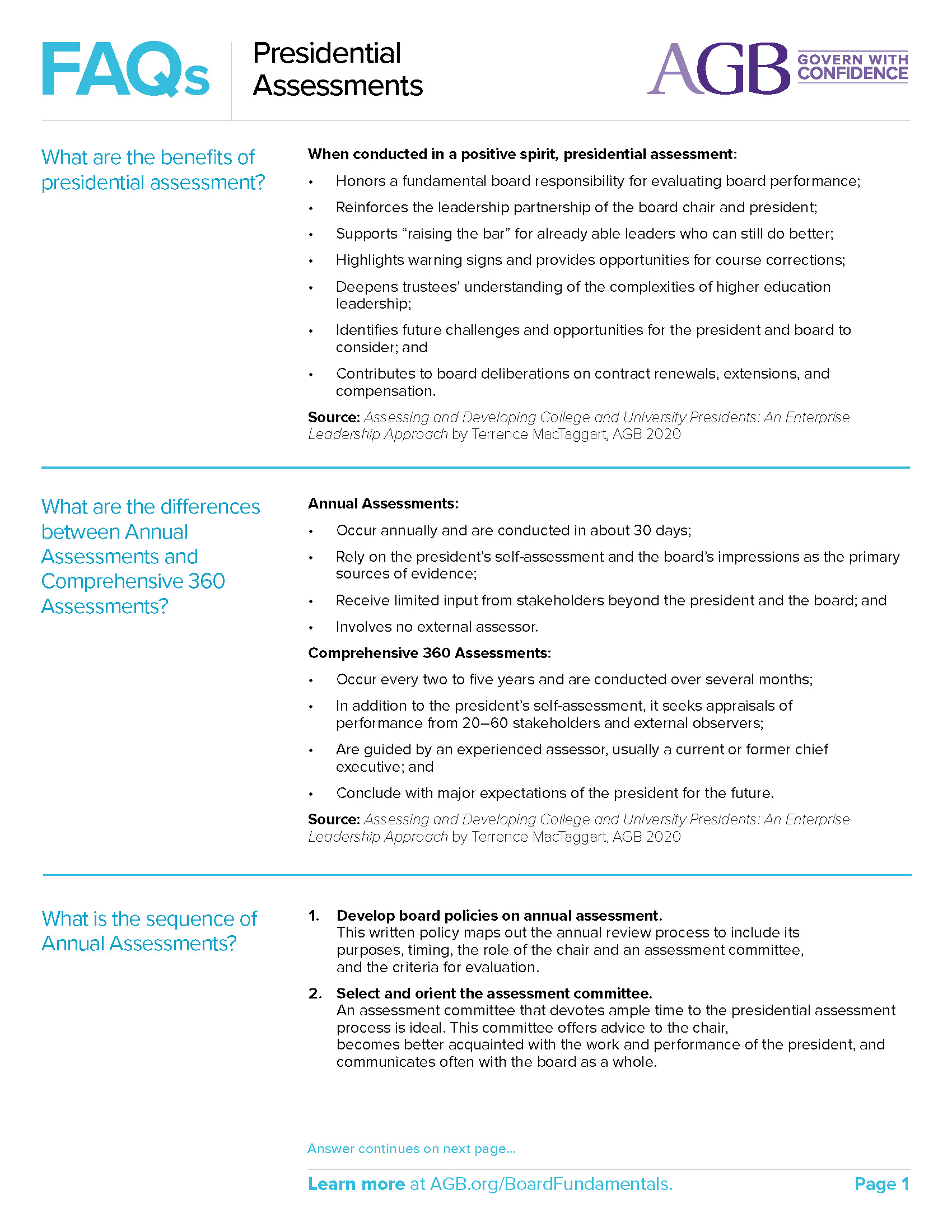 This guide helps boards and leaders prepare for presidential assessments. Understand the benefits of presidential assessments, different types of assessments, and the sequence assessments typically follow.