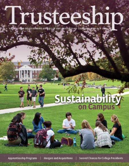 At this moment of societal transition, governing boards can and must work to support colleges and universities in taking comprehensive and systemic action to build the capacity of people to lead a climate-safe, just, and vibrant future. To harness this moment, governing boards must collaborate with students, faculty, staff, and administrators, in addition to local, state, and federal policymakers, and community-based partners. Higher education, with governing boards at the helm, can do its part to mitigate its carbon pollution, adapt to the consequences of climate change, and leverage the unique strengths of its diverse students, faculty, institutions, and systems to help protect those suffering the greatest harm, solve our biggest environmental challenges, and build a more sustainable society.